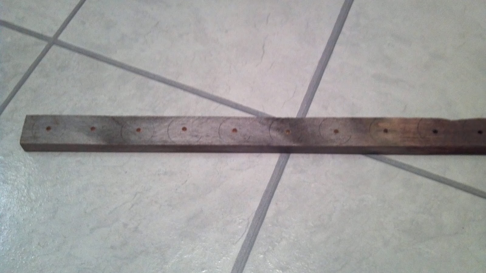 You will need a 7/32 drill bit. Drill the holes about half the depth of the board itself. If you aren't sure about stopping in time, measure the board's depth. I used a piece of masking tape to mark the drill bit as to where to stop.